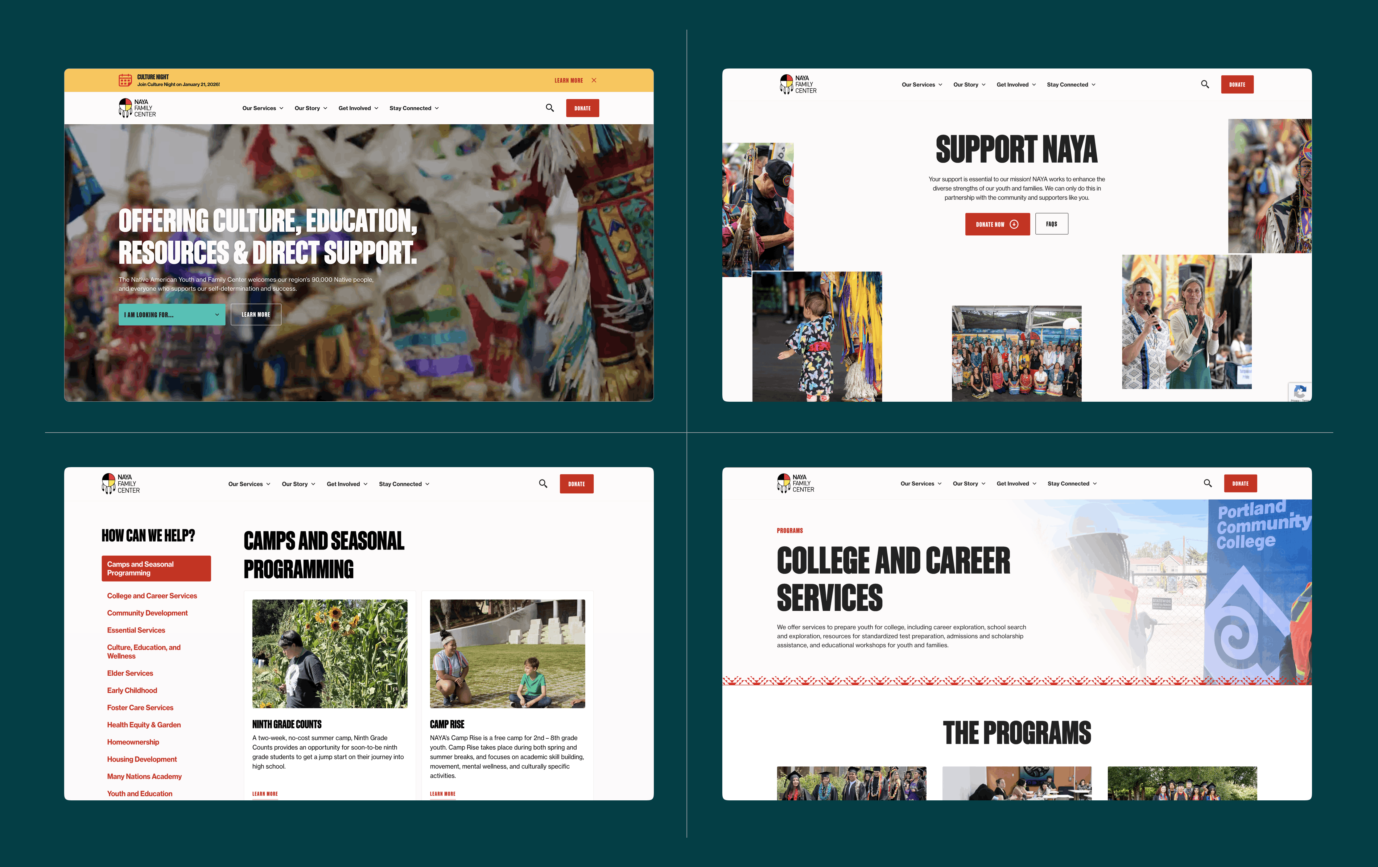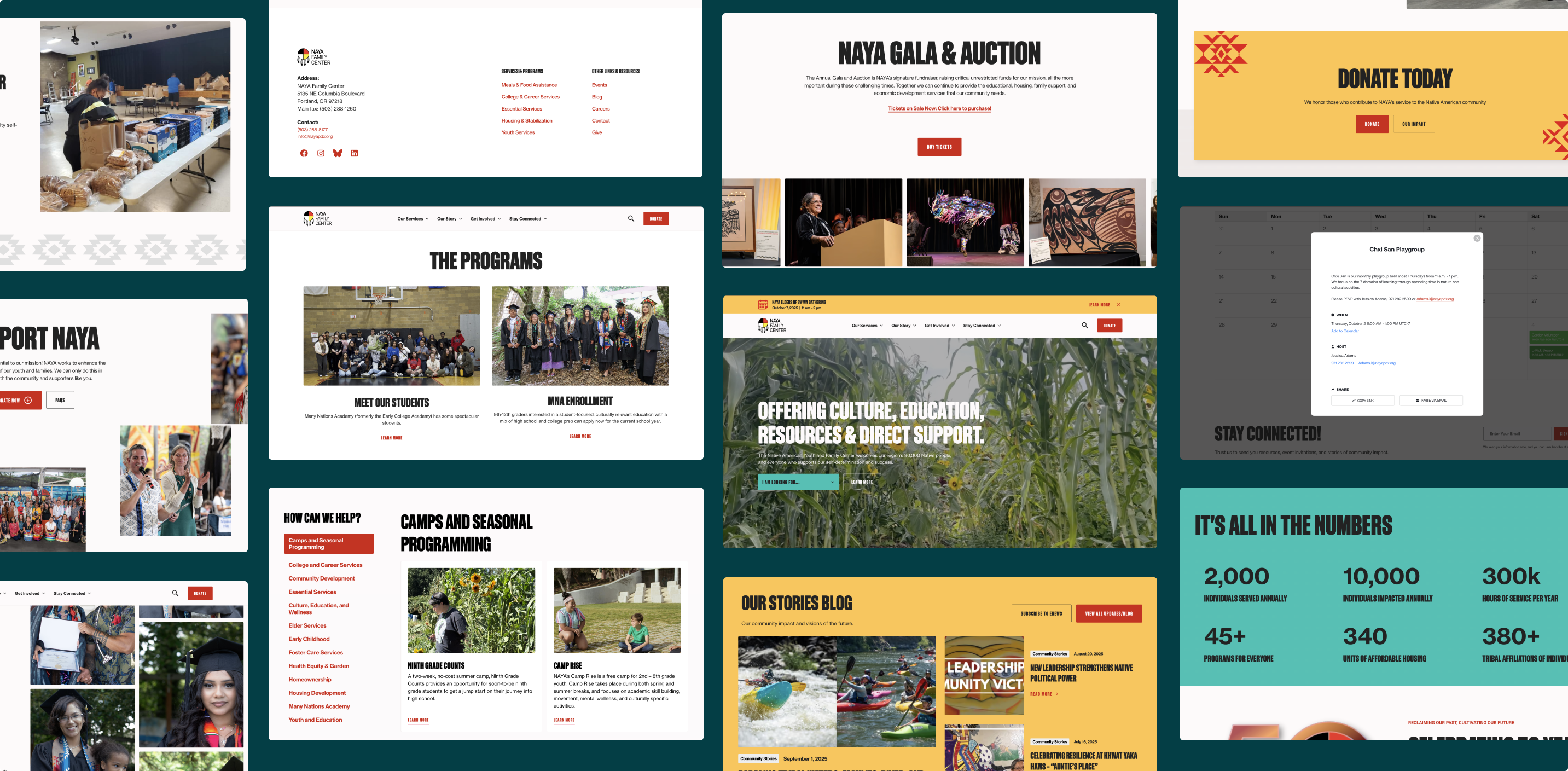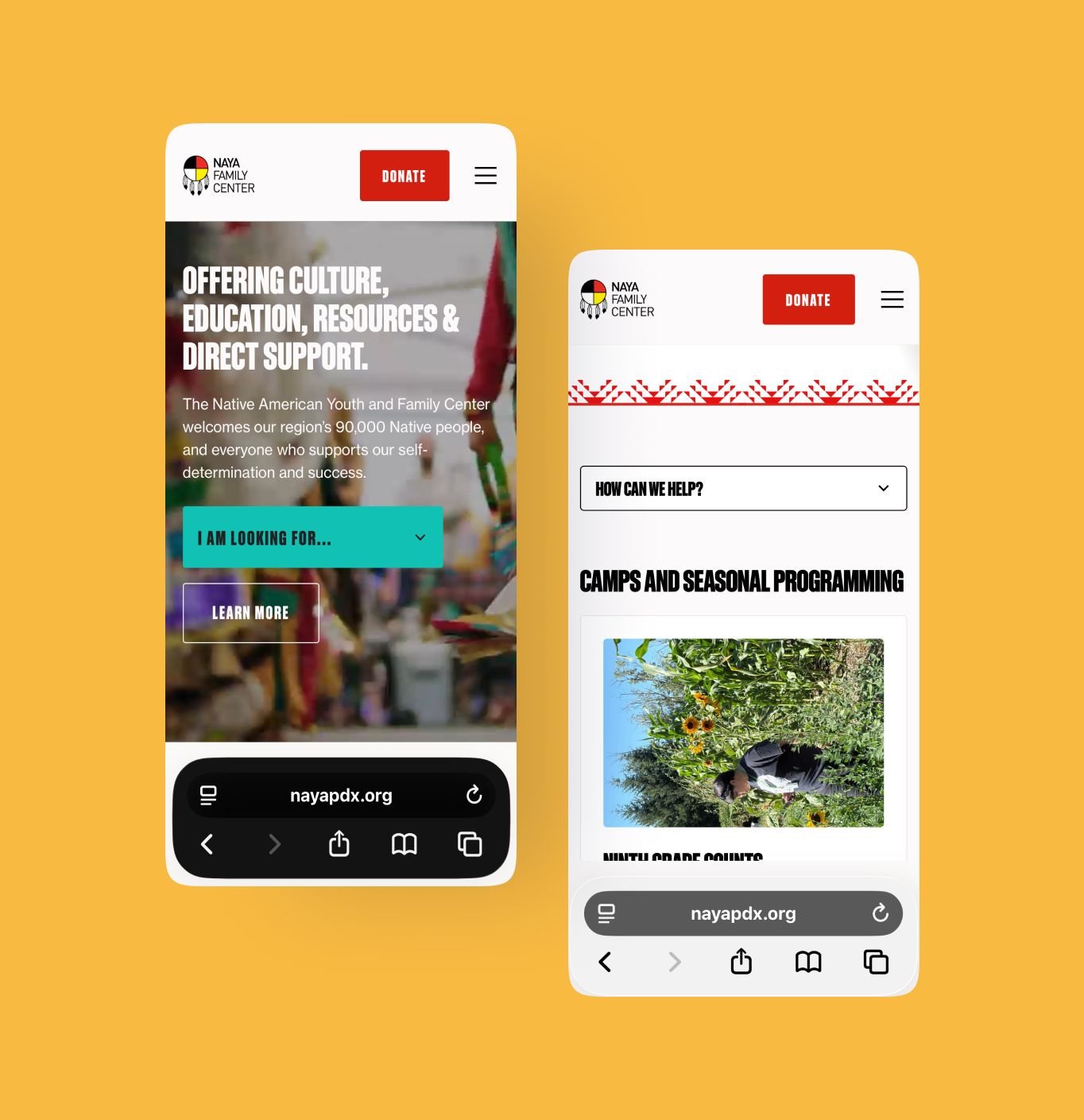 As NAYA's 50th anniversary was a year away, NAYA decided to seek out a partner to help refresh their most important digital touchpoint (their website). Greenflag was tapped, and we got to work. The old website was lacking in community serving functionalities like mobile-responsiveness, first-people centric branding, and negative site structure.